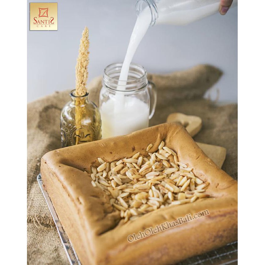 Kue spiku lembut dengan topping kenari yang melimpah ruah sesuai foto ini hadir di Bali sebagai salah satu oleh-oleh yang layak temans beli di Bali.