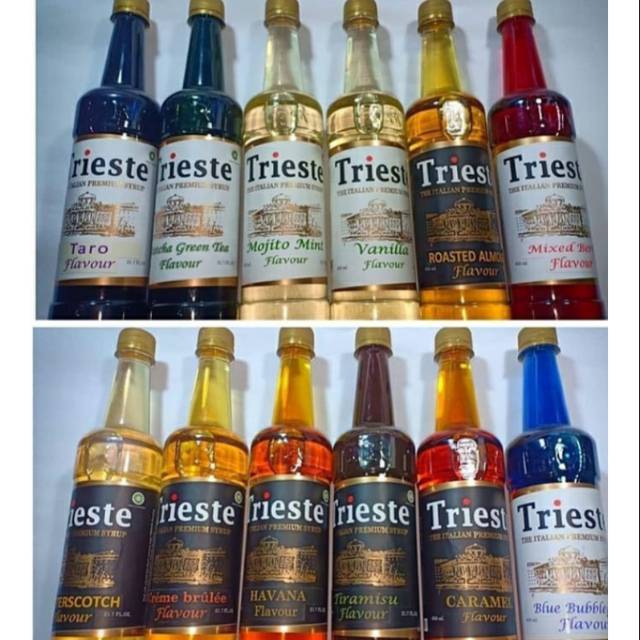 Ready Trieste sirup utk minuman segala macam yg pasti seger banget untuk dicampur ice cream juga bisa menambah kelezatan dilidah dg varian rasanya. Untuk campuran rasa dalam kue juga bisa gais.