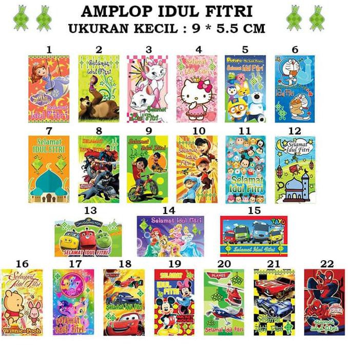 Amplop/Angpao Kecil Idul Fitri isi 10 pc (Small). Dengan model lebar ukuran 9 * 5.5 cm yang unik, model karakter yang cantik untuk merayakan hari raya lebaran.