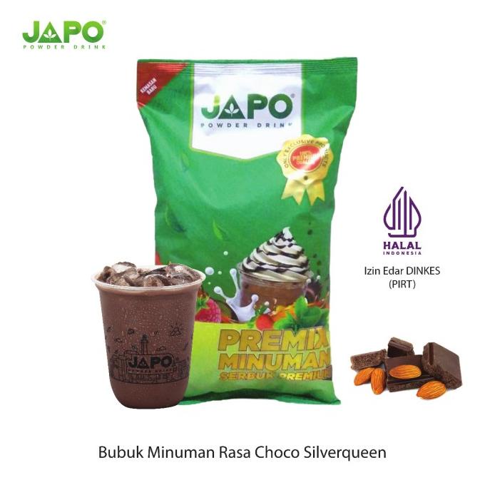 Masukkan powder JAPO mix gula 35 gr dan air panas sekitar 125 ml, kemudian masukkan es batu secukupnya (kurang lebih ½ - 1 cup kurang). Blend atau shake atau aduk dengan merata dan bisa tambahkan alternatif seperti susu kental manis atau susu UHT dan topping sesuai selera. Minuman JAPO siap disajikan.
