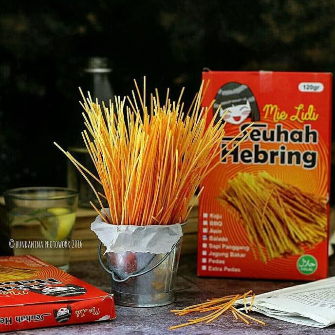 Namanya MI LIDI SEUHAH HEBRING, terbuat dari tepung terigu, garam, air, minyak, dan bumbu - bumbu yang halal guys
