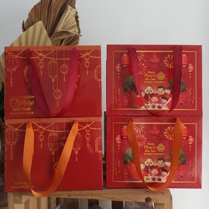 Ready...Ready...Ready...] Paperbag Imlek Persegi P 23,5 Cm X L 23,5 Cm X T 18 Cm - Lampion-Maroon