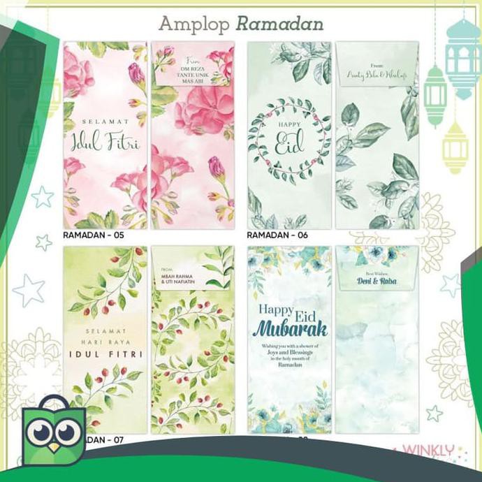 Bisa juga request edit teks di desain angpao tanpa tambahan biaya. "Selamat Idul Fitri" bisa diganti "Eid Mubarak", "Congratulations", "Best Wishes", dan sebagainya.