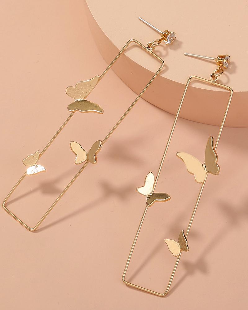 Rectangle Shaped Butterfly Pattern Drop Earrings, Gold