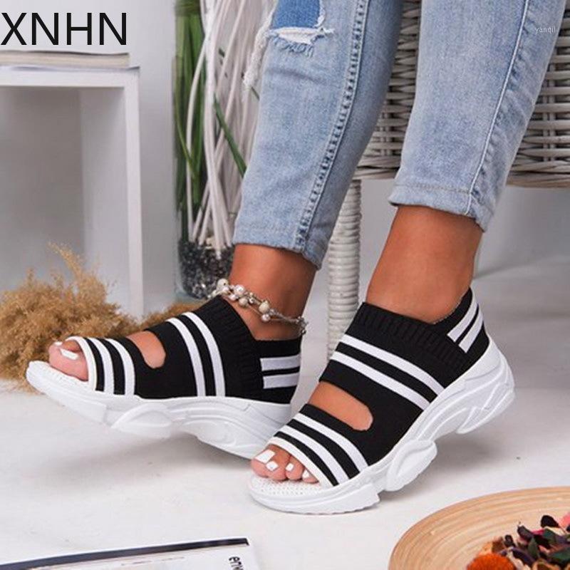 Platform Woman Sandals 2020 Slip On Flat Shoes Women Sneakers Flats Walking Ladies Sandals Knitting Sock Sneakers1, Yellow