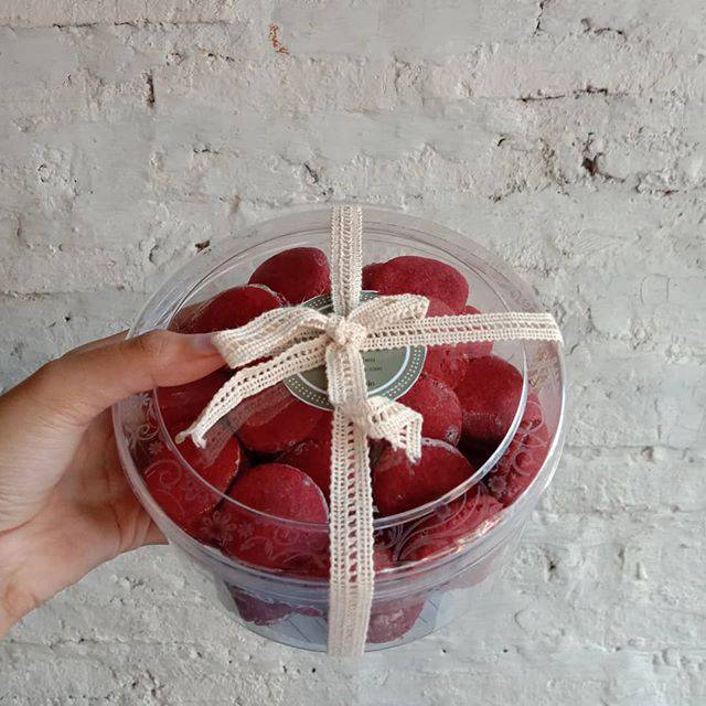 Cookies dengan rasa red Velvet dengan krim di tengahnya