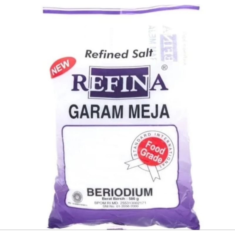 Refina Garam Meja adalah garam konsumsi yang diproses dengan teknologi refinery yaitu tahap pelarutan, pengendapan kotoran dan penyaringan logam berat kemudian dikristalkan dengan mesin modern berteknologi tinggi untuk menghasilkan garam sehat dan layak dikonsumsi.