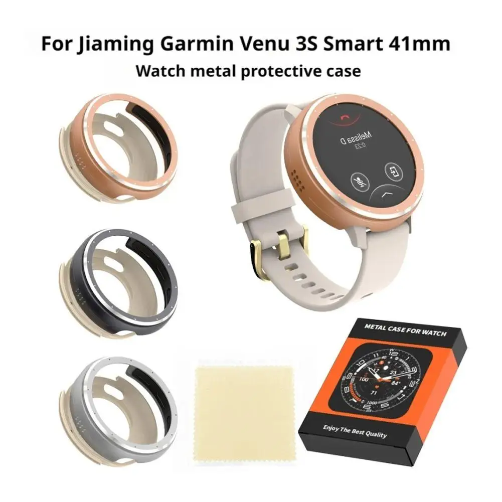 Replacement Metal Watch Bezel Protective Shockproof Watch Case Shell Anti-Scratch Screen Protector for Garmin Venu 3s 41mm