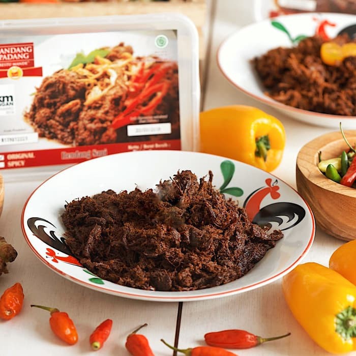 Rendang Sapi Suir kemasan vacuumDisebut Rendang Suir karena daging rendangnya sudah di suir sehingga lebih memudahkan dalam memakannya bersama nasi..Rendang Suir dibuat dari daging sapi pilihan dengan bumbu2 serta rempah khas Rumah Makan Restu Mande sehingga produk yang dihasilkan memanjakan selera nda karena rasanya enak dan outentik. Sertifikasi Halal MUIPIRTGMP dan ISO 9001:2004Netto 200g rendang sapi