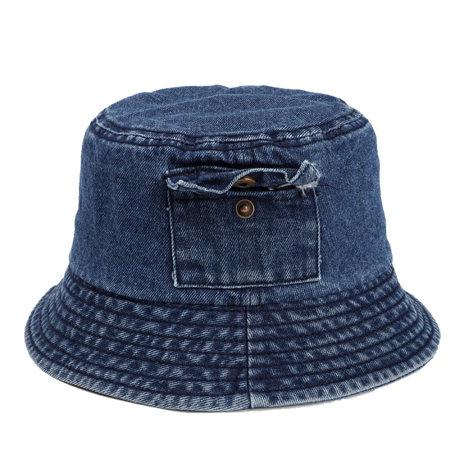 Retro Denim Small Pocket Short Brim Basin Hat Washed Hat