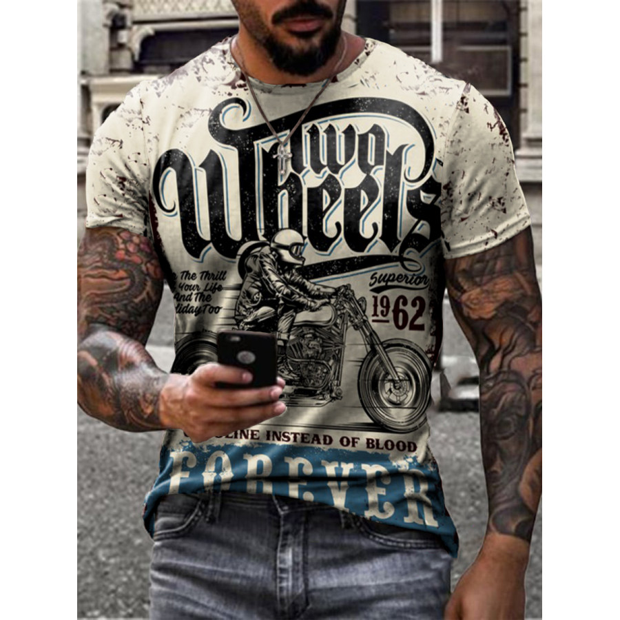 special offer,retro motorcycle print t-shirt