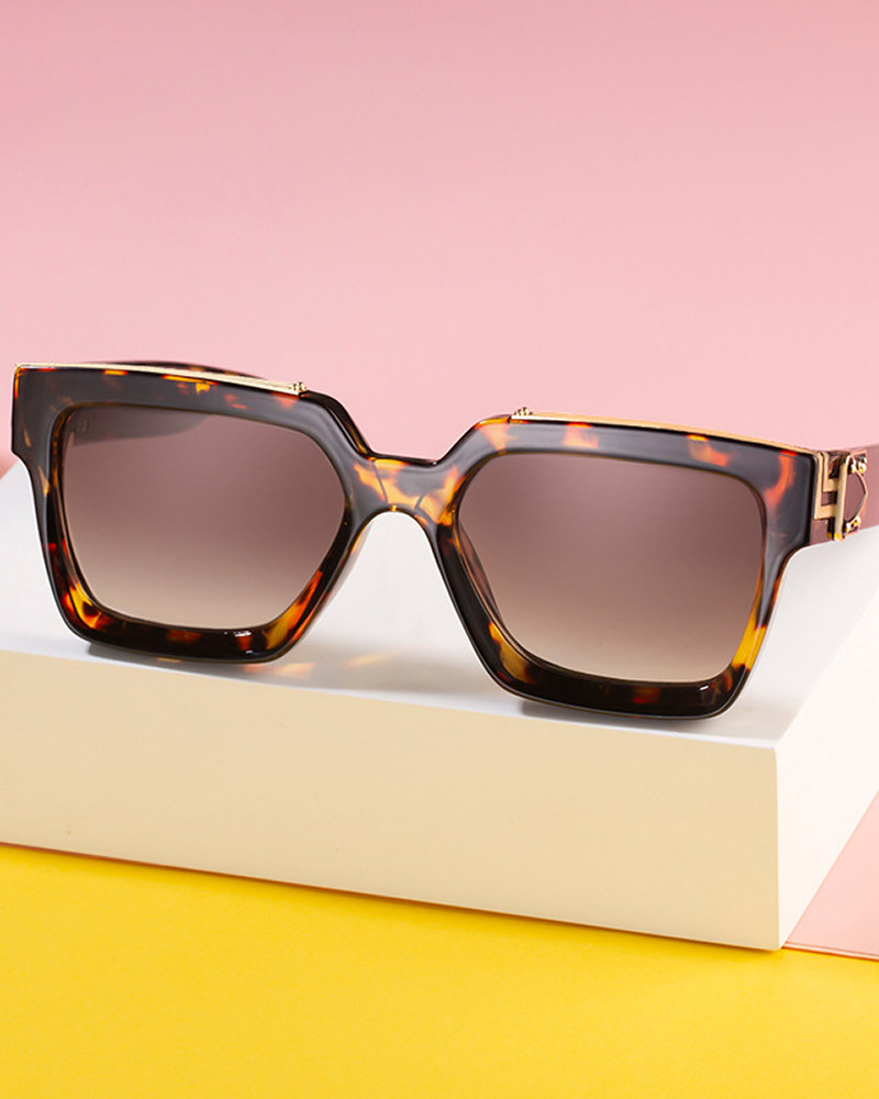 Retro Studded Square Frame Sunglasses, Leopard