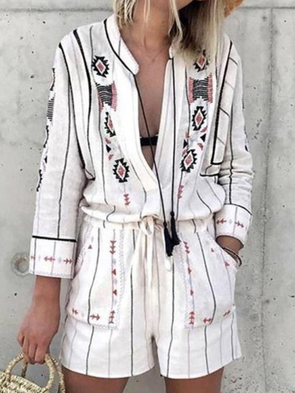 jumpsuits,retro pattern printed long-sleeved jumpsuit