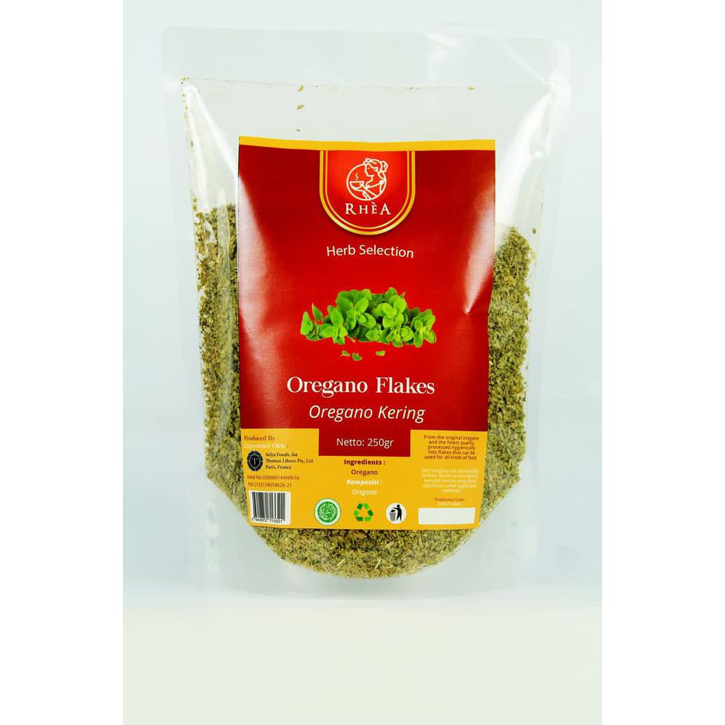 RHEA Oregano Flakes berasal dari Eropa, diolah dan dibersihkan dari oregano asli Eropa dan diproses menjadi bumbu masakan yang cocok digunakan untuk melezatkan setiap masakan anda dengan aroma dan rasa yang sangat khas.