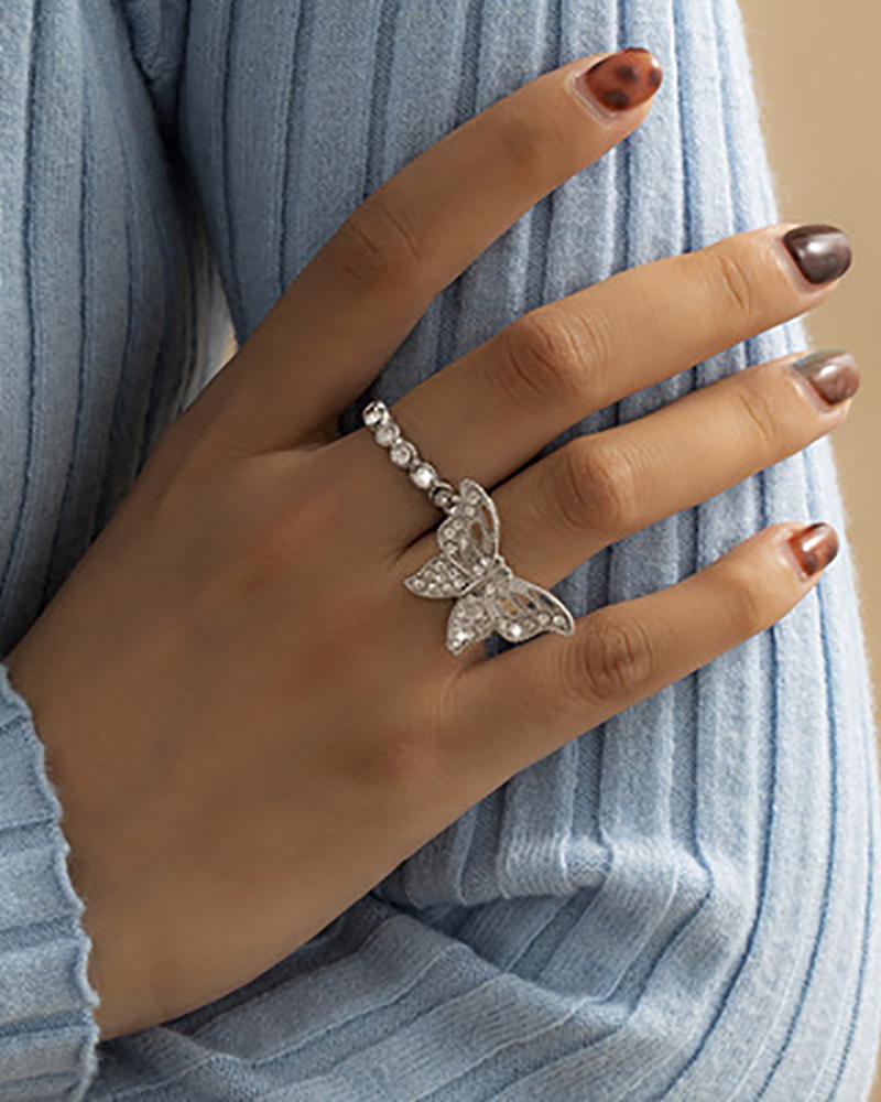 Rhinestone ButterflyDecor Rings Set, Style1