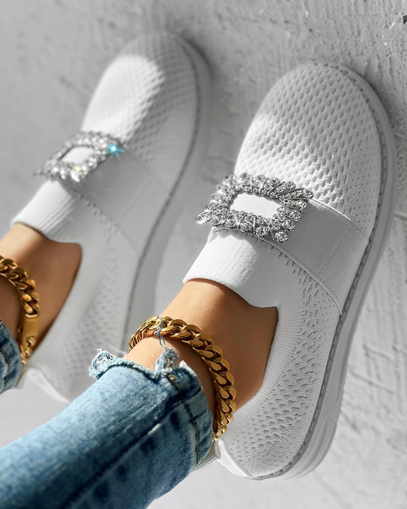 Rhinestone Decor Breathable Casual Slip-On, White
