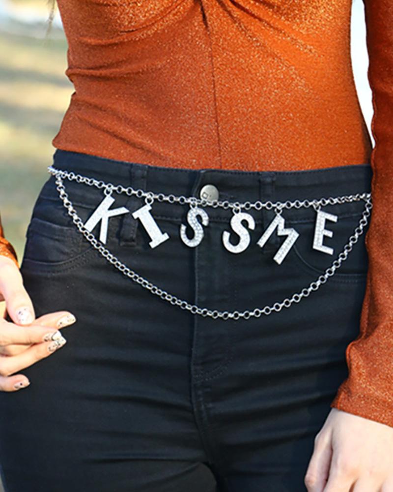 Rhinestone Decor Letter Pattern Waist Chain, Style2