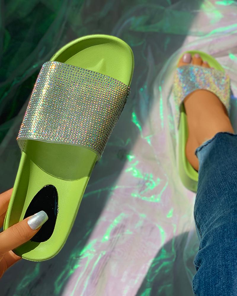 Rhinestone Peep Toe Flatform Heeled Sandals, Green
