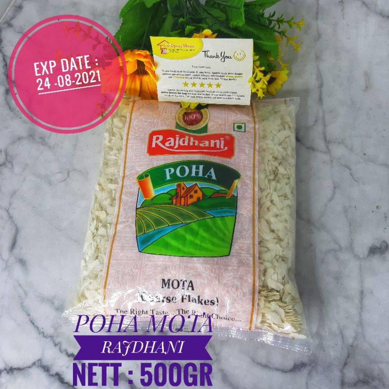 Poha Fine - Rice Flakes (Kepingan Nasi Kering) Merk Rajdhani adalah makanan yang terbuat dari nasi yang dipipihkan dan dikeringkan menjadi sejenis kepingan yang ringan dengan kandungan Sugar 0%. Rice Flakes mengandung energi yang tinggi sangat baik dikonsumsi oleh penderita Diabetes dan orang2 yang sedang melakukan DIET.
