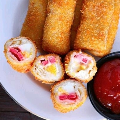 Risol Mayo dengan isian kornet, telur, keju, mayonaise yang melimpah lumer saat dimakan