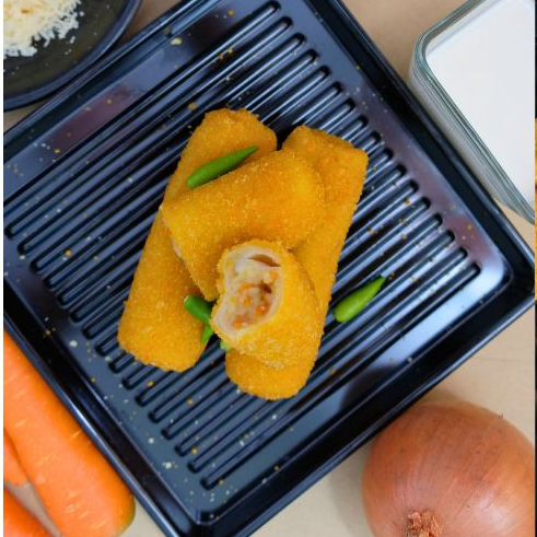 Risol berbalut tepung roti renyah dengan isian wortel, bawang bombay, seledri, susu, dan keju