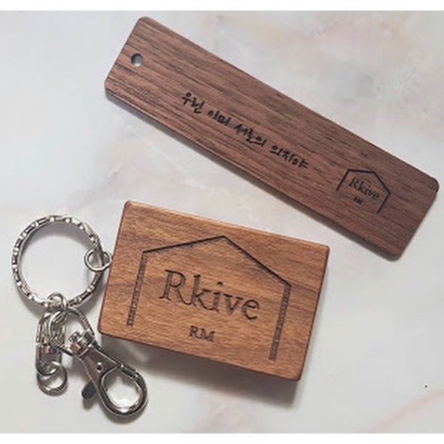 jadi kita kemarin sempat contact seller yang Namjoon bikin wooden plate, dan kita bisa order dalam form keyring, dengan kayu & font yang sama hanya sizenya saja yang kecil, samplenya bisa di cek di foto ya.