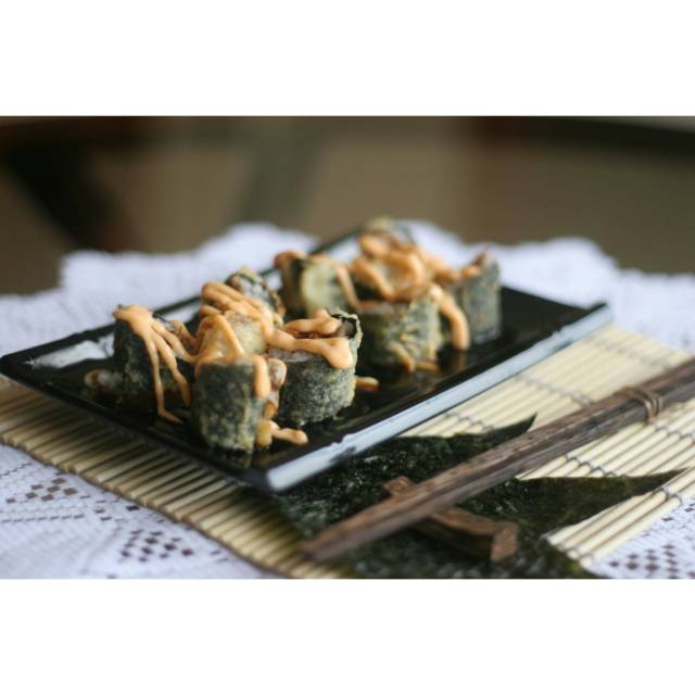Deep Fried Roll With Sauteed Salmon And Tuna Inside. ( Isi 8 Potong, Pedas, Matang)