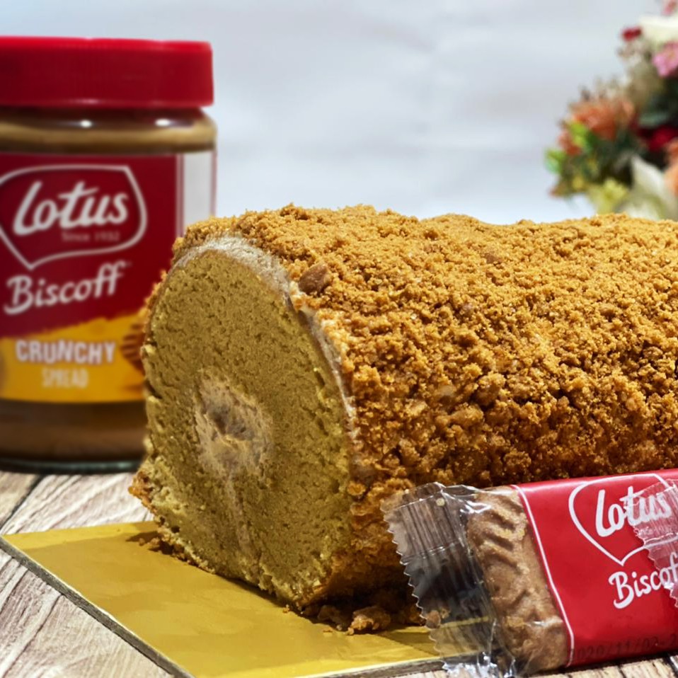 Rasakan kelembutan rollcake special biscoff yang lembut dgn paduan cream khusus dgn campuran selai lotus biscoff..