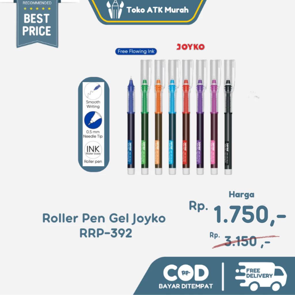 Roller Pen Gel Pulpen Rol Joyko RRP-392 Free Flowing Ink 0.5 mm