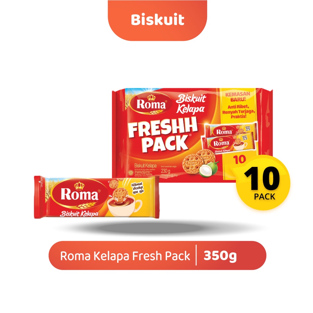 Roma biskuit kelapa merupakan biskuit yang dibuat dari kelapa segar pilihan. Biskuit ini dilengkapi dengan sumber vitamin dan kalsium yang dapat menutrisi tubuh Anda. Nikmati biskuit bersama teh di sore hari dapat mencerahkan hari Anda.