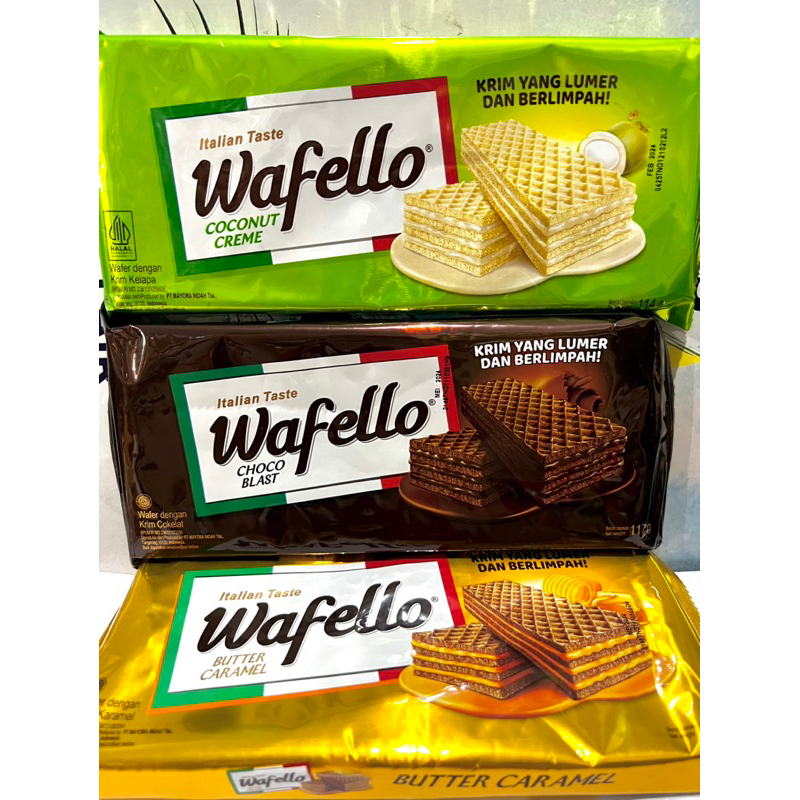 Roma Wafello Wafer adalah biskuit wafer isi krim cokelat yang nikmat. Dibuat menggunkan bahan berkualitas sehingga menghasilkan biskuit yang lezat untuk dinikmati. Dibuat dengan beberapa lapis wafer dengan isian krim cokelat di antara wafer dengan tekstur renyah.