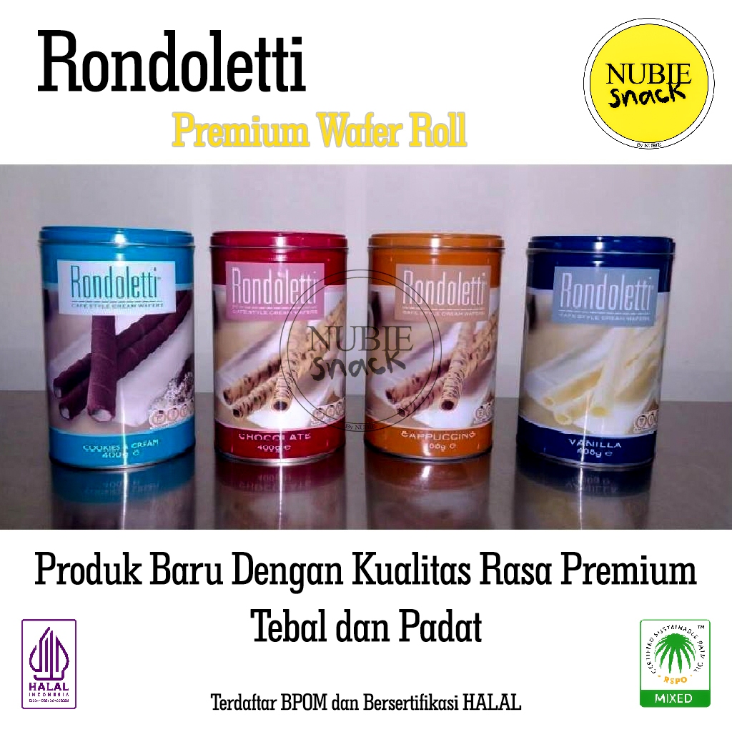 Rondoletti adalah wafer roll PREMIUM yang diproduksi di tangerang dibawah lisensi Australia