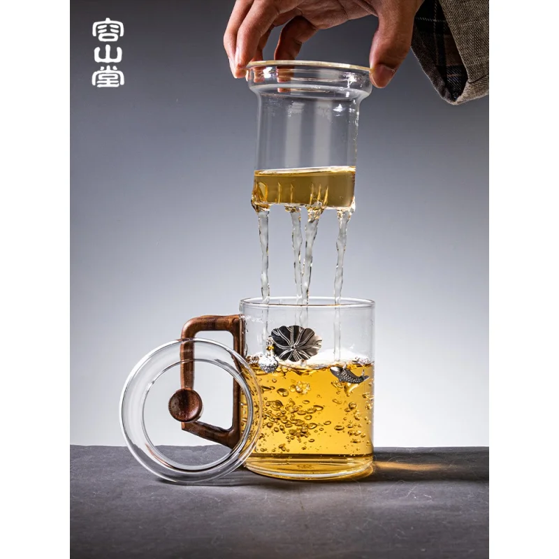 Rongshantang Посеребренная стеклянная термостойкая чашка для чая с разделением воды, домашнее ситечко, чашка для заваривания чая, Офисная модная чашка для воды