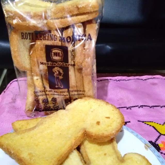 Roti kering monica, garing renyah lembut manis gurih,cocok tuk teman minum teh atau di makan langsung,ada harga khusus tuk pengambilan diatas 10 bungkus