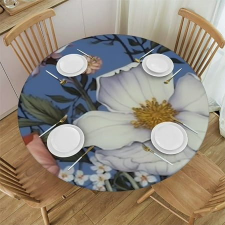 Round Fitted Tablecloth with Elastic Spring Floral Lily Pattern Round Elastic Table Cloth