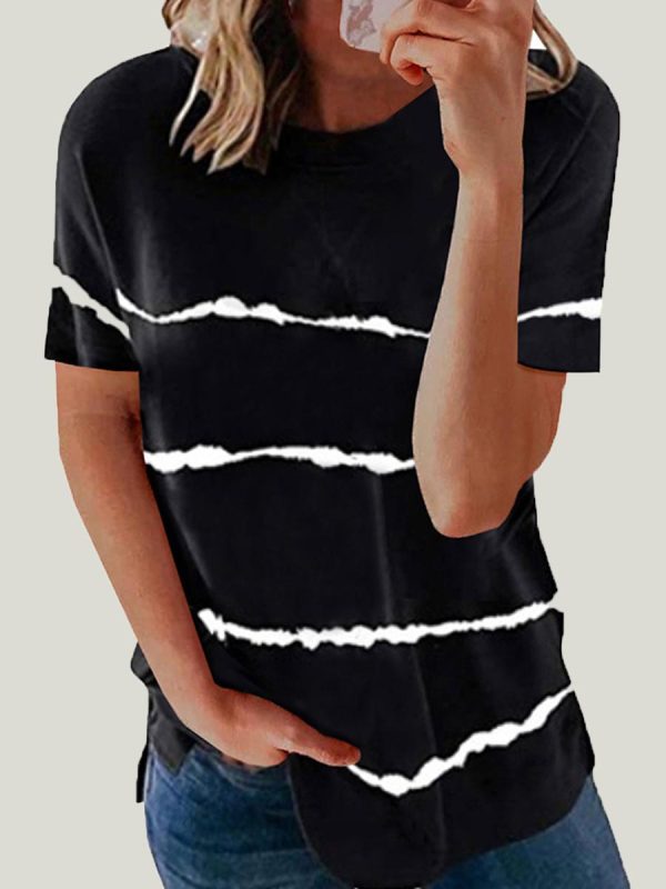 Round Neck Striped Short Sleeve T-shirt