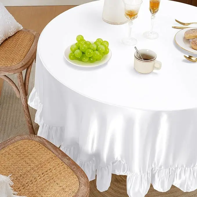 Round Ruffle Tablecloth Solid 70 Inch Satin Tablecloth Soft Table Cover for Wedding Banquet, Party, Kitchen Dining Tables Decor
