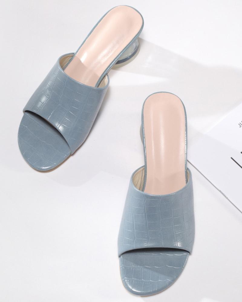 Round-toe Solid Color Crocodile Pattern Open-toe High Heels, Gray
