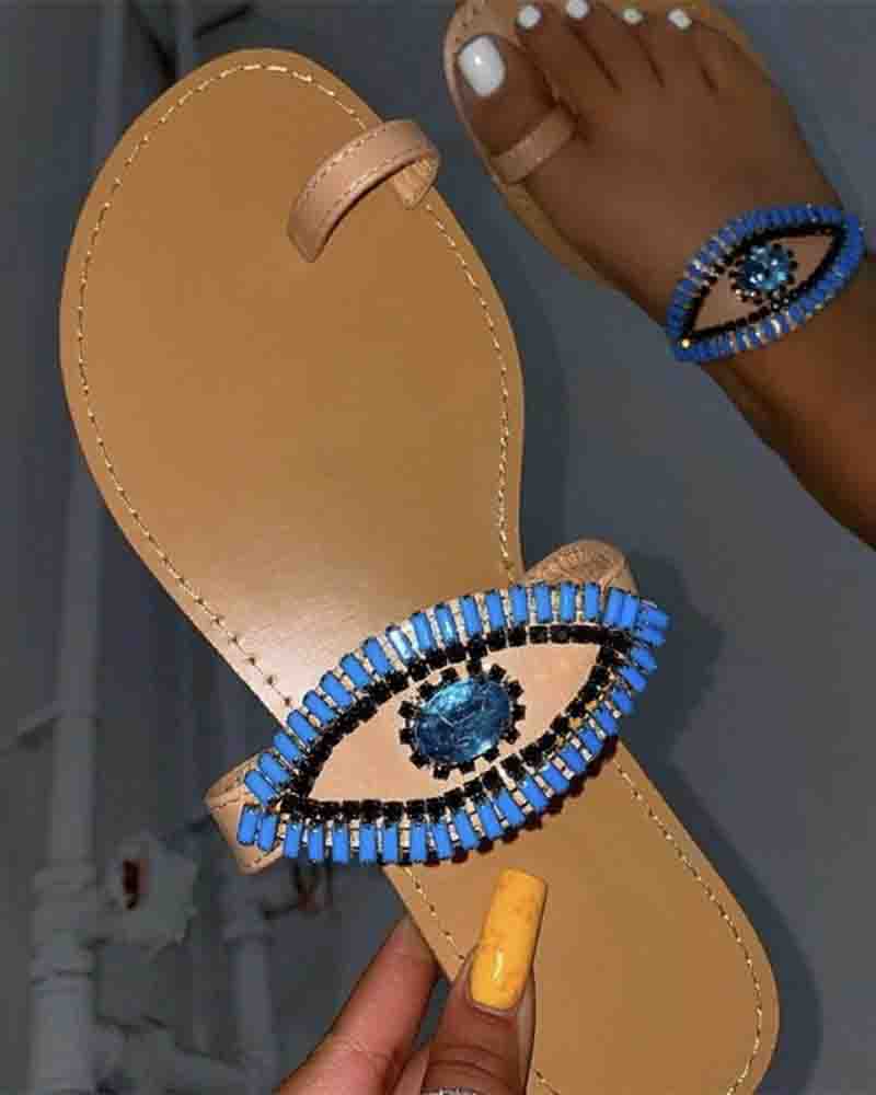 Round-toe Splicing Eye Pattern Toe Post Flat Slippers, Coffee