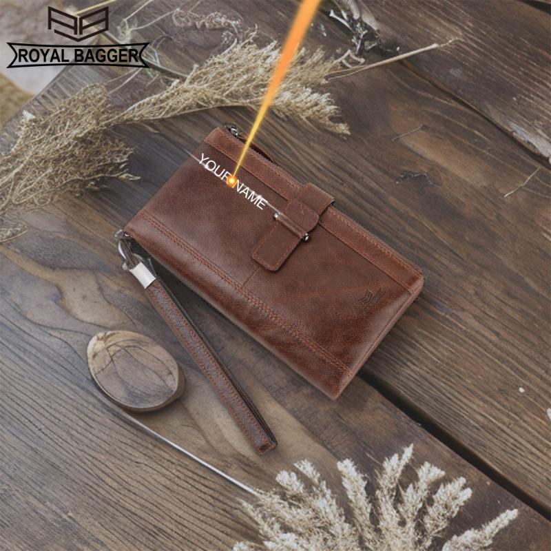Royal Bagger Ретро-клатчи для мужчин из натуральной коровьей кожи RFID-кошелек-кошелек с визитницей Большая вместительная сумка на запястье 1421 чёрный