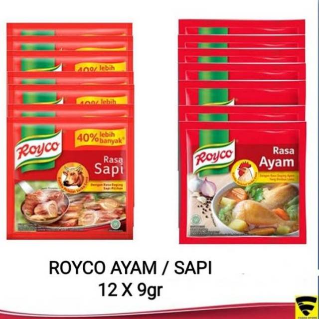 Royco rasa ayam sachet 9gram per gantung. 1gantung isi 12sachet. Expire masih lama. Produk baru dari Pabrik