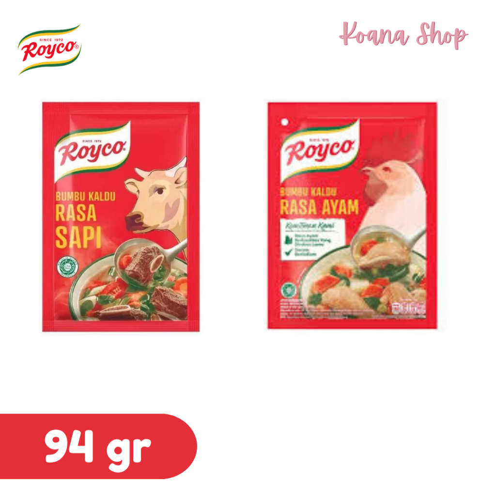 Royco Bumbu Kaldu Penyedap Rasa Sapi 94 g adalah salah satu inovasi bumbu masakan Indonesia berbekal pengalaman panjang selama 30 tahun yang diracik dari bahan-bahan dan rempah pilihan, seperti daging sapi pilihan yang direbus secara baik. Mudah larut dan meresap sehingga membantu memberi rasa kaldu yang mantap pada masakan Anda serta membantu memasak dengan mudah dan menyenangkan.