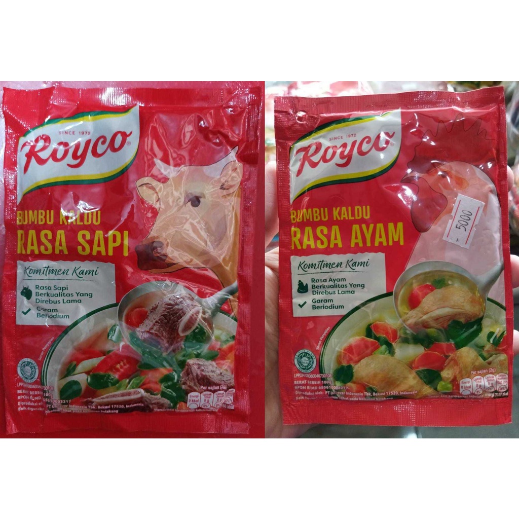 Royco Kaldu Ayam merupakan bumbu pelezat masakan yang terbuat dari bahan-bahan dan rempah pilihan, termasuk daging ayam pilihan yang direbus lama. Memberikan rasa kaldu yang mantap pada masakan Anda. Tambahkan Royco Kaldu Ayam ke dalam masakan rumah. Mudah larut dalam masakan.