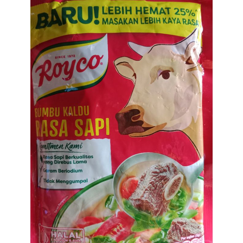 Royco Bumbu Kaldu Rasa Sapi dibuat dengan daging sapi yang direbus lama memberikan kaldu mantap dan rasa daging sapi lezat untuk semua masakan. Tambahkan Royco Kaldu Sapi kedalam masakan rumah.