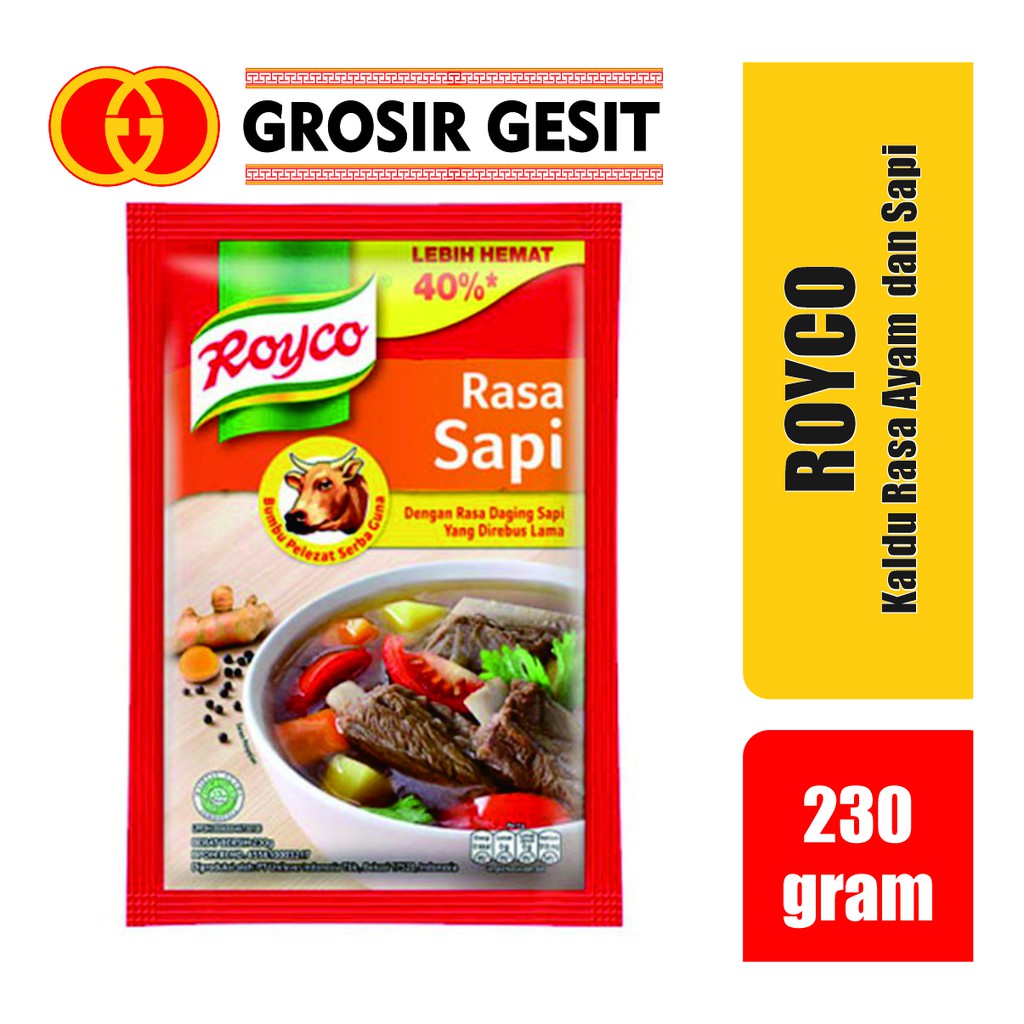 - Royco Bumbu Rasa Sapi : merupakan bumbu pelezat yang dihasilkan dari bahan dan rempah pilihan, seperti sumsum tulang yang gurih dan daging sapi yang berkualitas. Royco Kaldu Sapi dibuat dengan daging sapi yang direbus lama sehingga memberikan kaldu mantap dan rasa daging lezat untuk semua masakan.