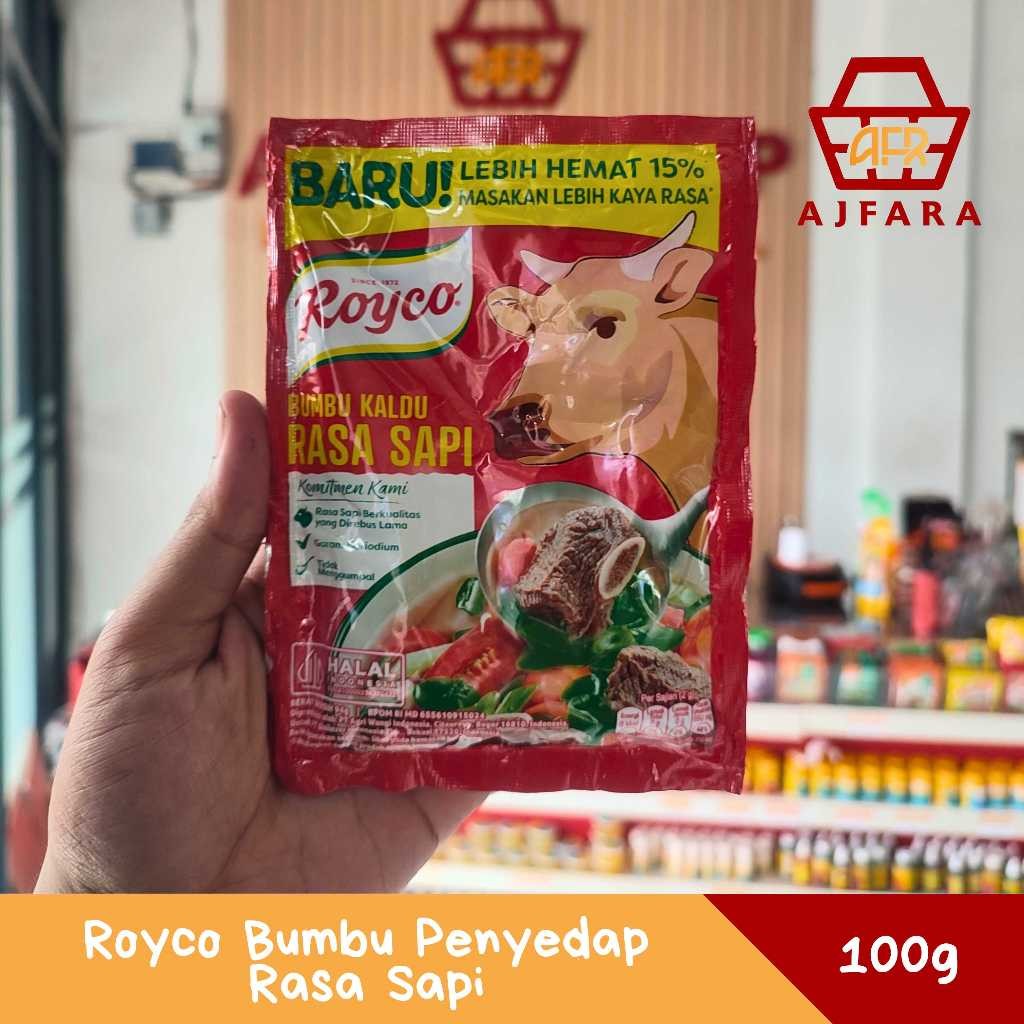 2. Royco Sapi 100gr: Bumbu perasa untuk masakan sapi dengan kemasan 100 gram. Terbuat dari campuran rempah-rempah dan bahan alami untuk menambah cita rasa gurih pada masakan sapi Anda.