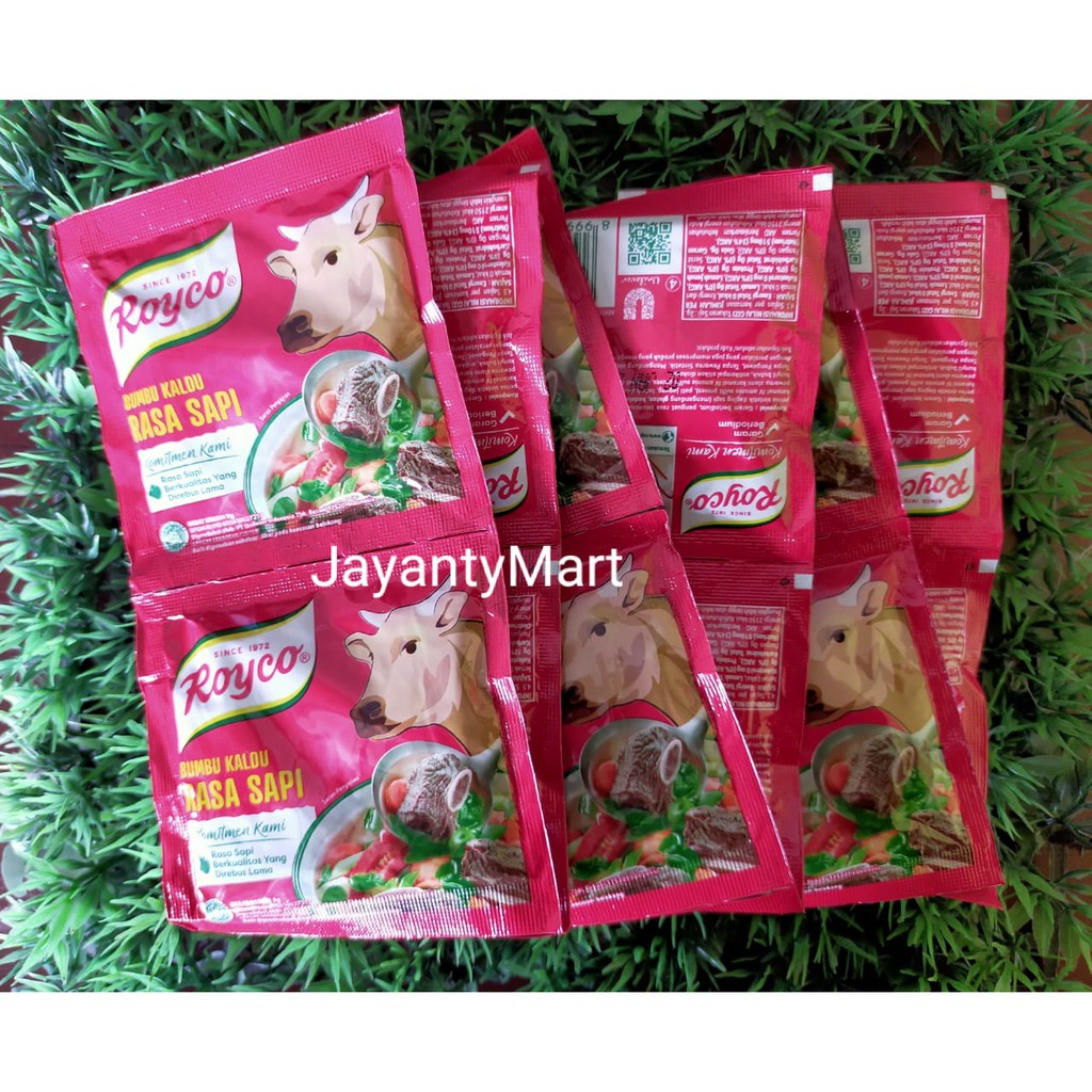 Royco Bumbu Penyedap Makanan Rasa Kaldu Sapi 9gr merupakan bumbu pelezat masakan yang terbuat dari bahan-bahan dan rempah pilihan, termasuk daging sapi pilihan yang direbus lama. Memberikan rasa kaldu yang mantap pada masakan Anda. Tambahkan Royco Kaldu Sapi ke dalam masakan rumah. Mudah larut dalam masakan.