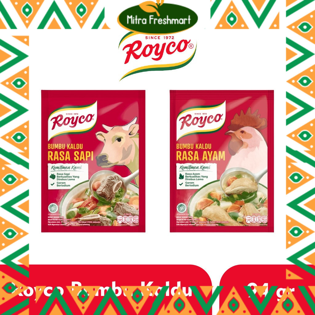Penyedap royco ayam merupakan salah satu bumbu dapur yang digunakan pada masakan agar menghasilkan aroma yang sedap dan rasanya tidak hambar. Diproses secara higienis dan sangat praktis. Terbuat dari daging ayam pilihan, dan rempah-rempah alami khas Indonesia sehingga mudah terserap sehingga cocok untuk beragam hidangan berkuah, aneka tumisan, dan lain-lain. Bahan-bahan yang di gunakan terdiri dari garam, gula, penguat rasa (mononatrium glutamat, dinatrium inosinat dan guanilat), Dekstrin, Lemak Nabati, Perisa Identik Alami Ayam (Mengandung Telur), Bawang Bubuk (1%), Minyak Nabati, Pati Jagung, Anti Kempal Silikon Dioksida, Lada Putih Bubuk, Pengatur Keasaman Asam Sitrat, Seledri Bubuk, Daging Ayam (0.02%) (Mengandung Antioksidan TBHQ), Kunyit Bubuk, Pewarna Tartrazin Cl 19140.