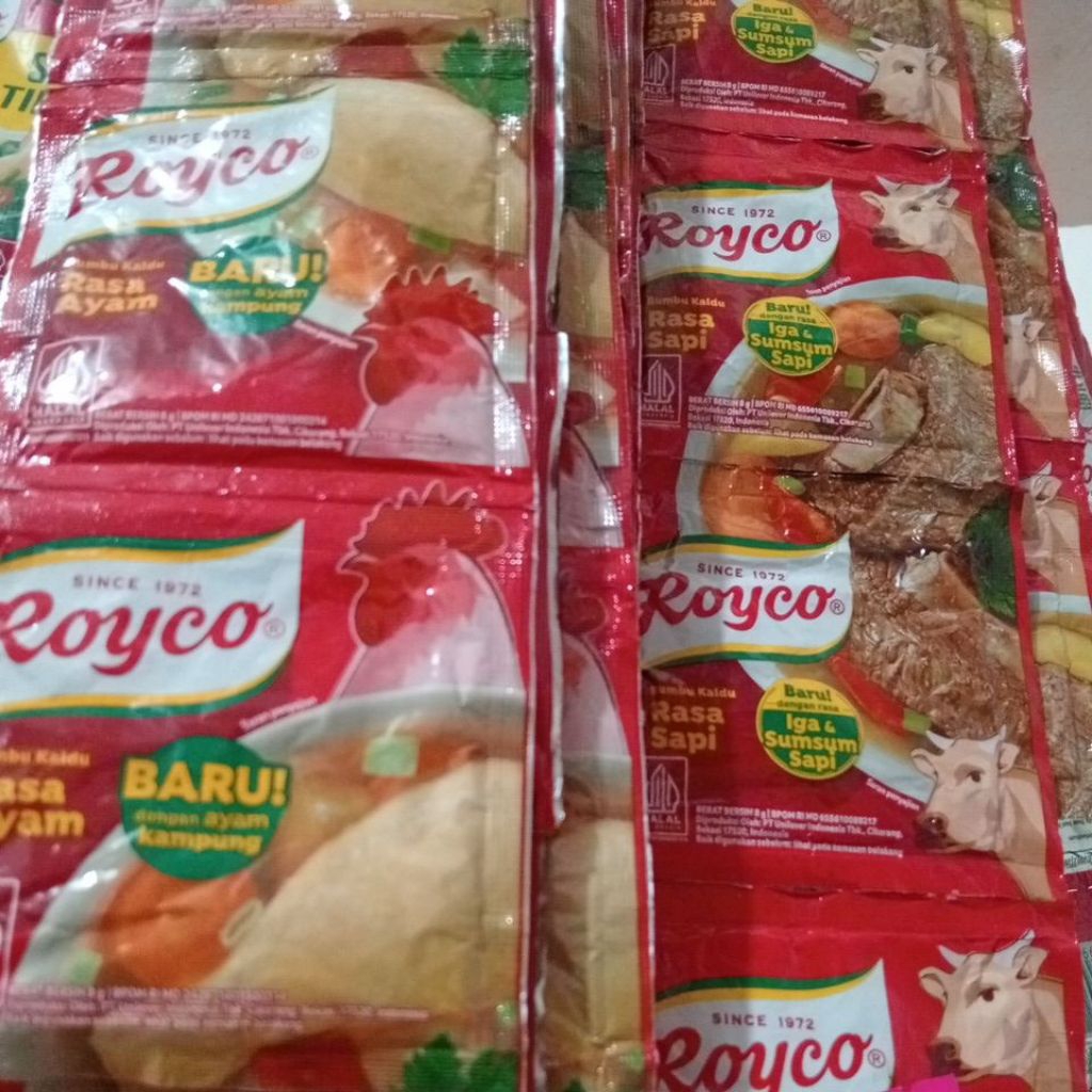 royco ayam dengan rasa ayam kampung dan Royco sapi rasa iga&sumsum sapi