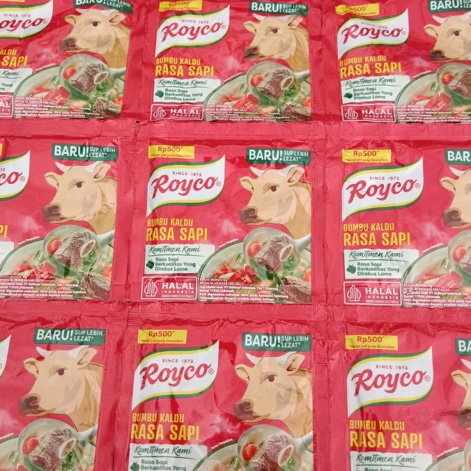 Royco bumbu kaldu rasa sapi formula lezat dibuat dengan daging dan tulang sapi pilihan yang direbus selama serta rempah berkualitas.